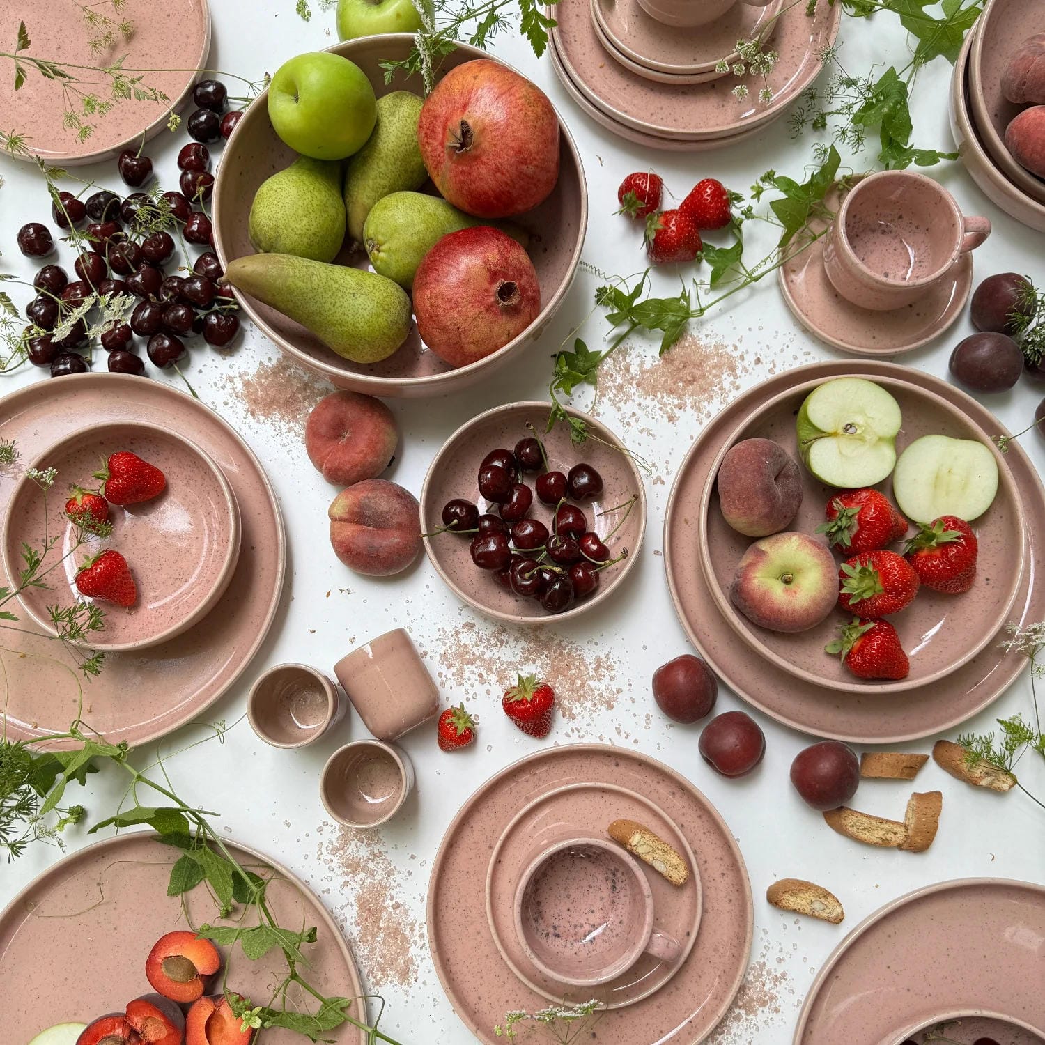 4-er Set Tasse + Teller Emma - rosa gesprenkelt